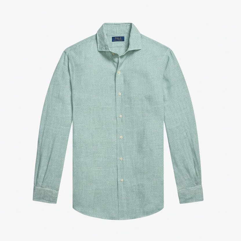 Dieses Hemd aus ultraleichtem Leinen ist mit einem eleganten, gestickten Brustemblem versehen.