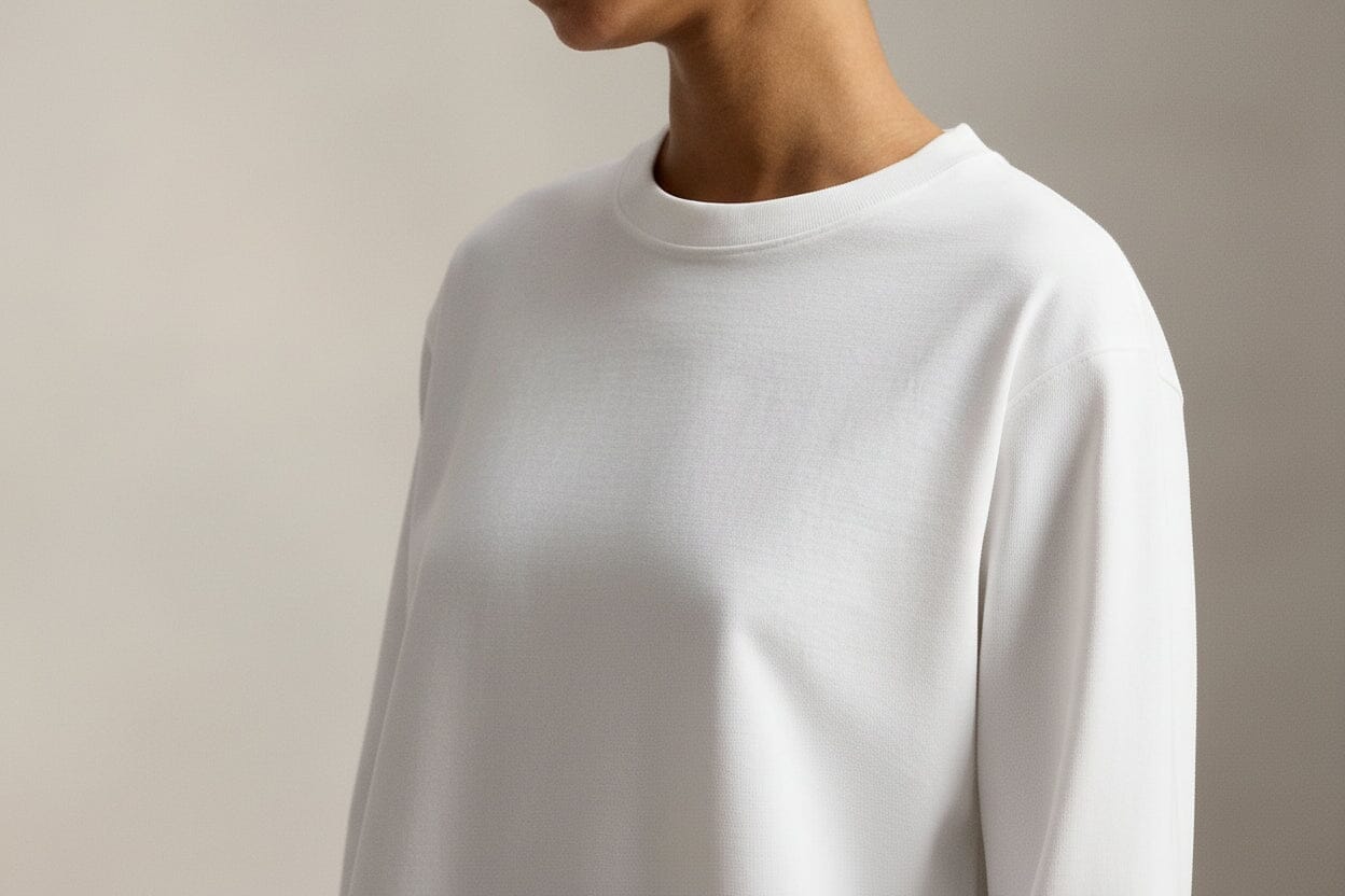 - Rundhalsausschnitt. Lange Ärmel mit gerippten Bündchen. Tief sitzende Schultern.
